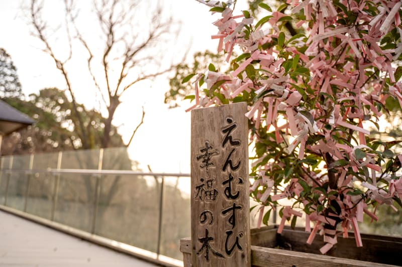 ほかにも、恋の願いをこよりに書いて結ぶと願いが叶うといわれている「幸福の木」や、意中の人との再会や出会いを祈る「再会の木」なども人気のスポット。