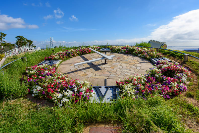 サービスエリア上りにある展望台周辺には、色とりどりの花が囲う大きな花時計が。花時計と明石大橋を両方背景に入れて、淡路島ならではの記念写真を撮影してみて♪