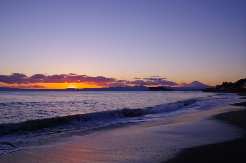 鎌倉駅から江ノ電に揺られて約15分。どこまでも広がる美しい海が魅力の『七里ヶ浜』は、日本の渚百選のひとつにも選ばれているビーチです。晴れた日には、富士山まで見渡すこともできます。