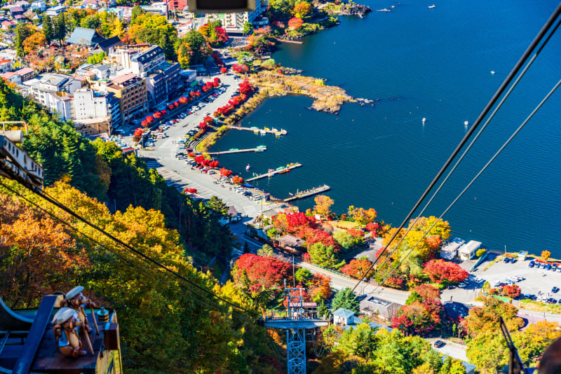 河口湖天上山公園までは、ロープウェイに乗車する必要があるのですが、ここから見える景色もまた絶景!