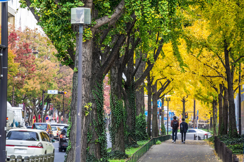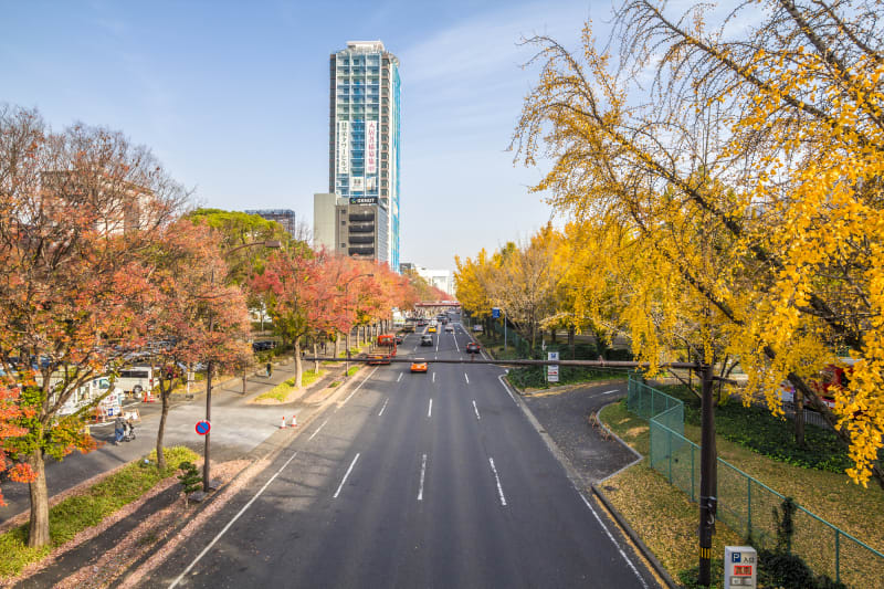 名古屋では紅葉のスポットとして、ロードサイドを飾るイチョウ並木も人気です。数ある紅葉の並木道のなかでもおすすめなのが、ボリューミーなイチョウが立ち並ぶ『若宮大通』と『桜通』。
