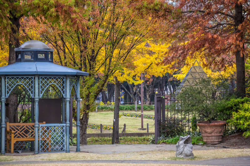 春夏のカラフルなお花はもちろん、秋の紅葉も必見! 例年11月からが見ごろでイチョウやモミジ、ハゼが美しく色づきます。