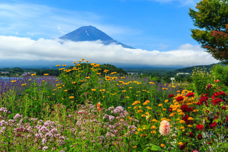 4月下旬から10月初旬にかけては、ラベンダー以外にもチューリップやコスモス、コキアなど多彩な花々が咲き誇り、富士山ビューとのコラボレーションも最高です。