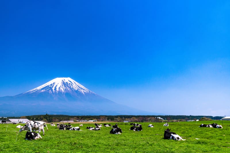 高原の牧場からは、富士山を背景にのどかな牧場風景も楽しめます♪