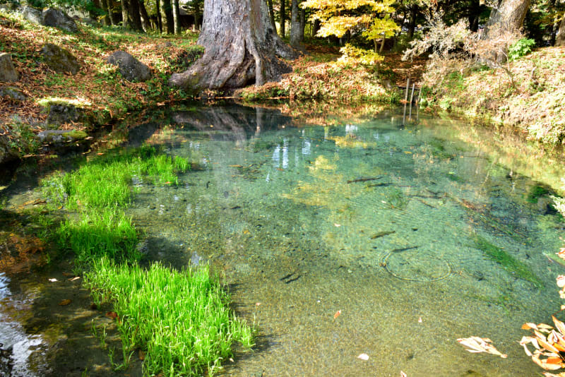 8つの池の中でも最も美しいといわれているのが「底抜池」です。ほかの池よりも水深が浅く、透明感が抜群で、泳いでいる魚の姿も水面越しにくっきりと見えるほど!