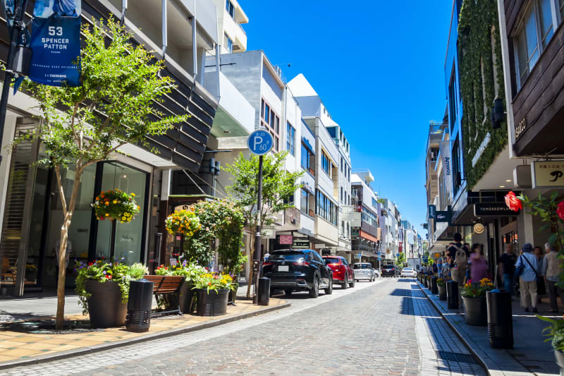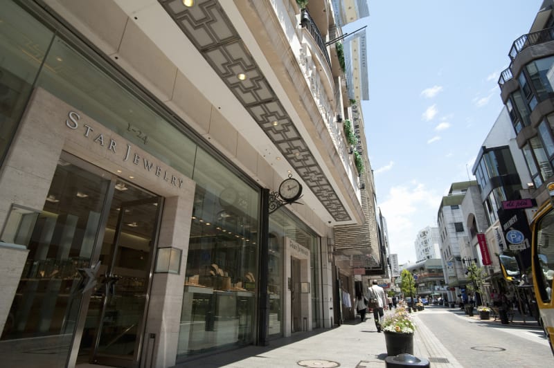 西洋風な雰囲気のショッピングストリートには、ブティックやブランドショップ、カフェ、レストランなどのお洒落なお店が立ち並び、年に2回開催される大セール「チャーミングセール」には、日本全国から多くの人が集まります。
