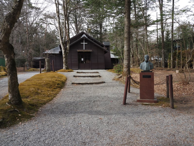 軽井沢で一番初めに建てられたといわれる教会で、軽井沢避暑地の発祥の地でもあります。純洋風の教会とは少し違った佇まいで、ダークな色の外壁とトタン屋根を飾る鬼瓦がポイント。