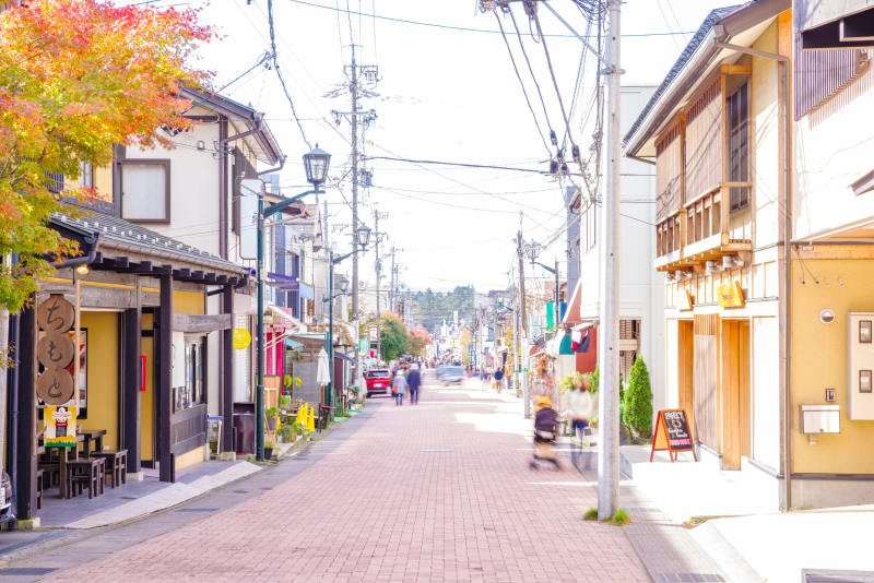 外国人の避暑地として愛された名残がうかがえる、レトロな雰囲気の商店街。老舗のレストランやトレンドのスイーツを販売する製菓店など、さまざまなお店が立ち並んでいます。