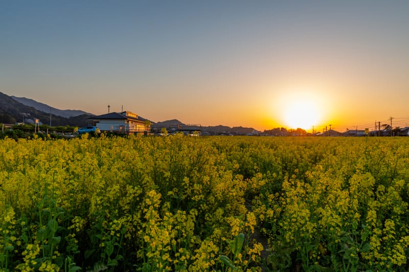 地元産の新鮮な野菜と採れたての魚介を販売している糸島市の直売所『福ふくの里』。約5万本の菜の花畑が広がる菜の花の名所として有名な場所です。