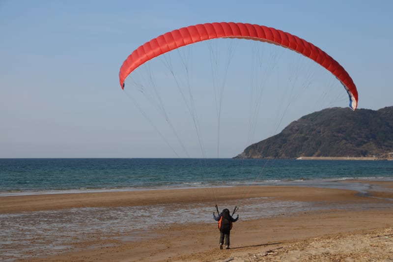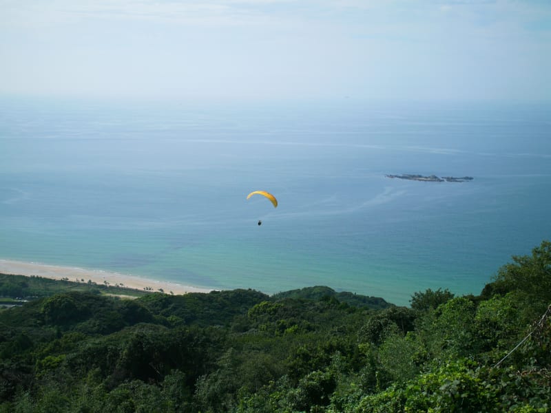 糸島の注目アクティビティ・パラグライダー! 市内にある「アクションパラグライダースクール」では、未経験者でもパラグライダー体験ができ、空中散歩で糸島の海、山、大自然を満喫できます。