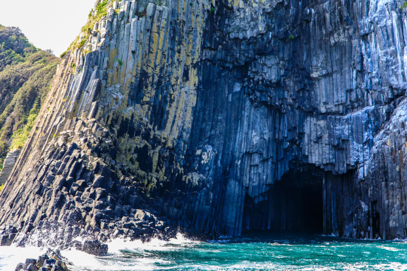 日本最大玄武洞のひとつ『芥屋の大門(けやのおおと)』。玄界灘の荒波に削られてできた洞窟で、その大きさはなんと高さ64m、開口10m、奥行き90m。