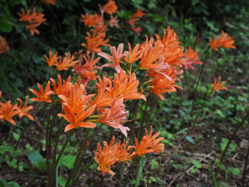 毎年花を咲かせる多年草のキツネノカミソリ。見頃は7月中旬から下旬頃で、水無登山口から水無林間歩道を30分程度登ると、登山道両側にキツネノカミソリが絨毯のように広がっています。