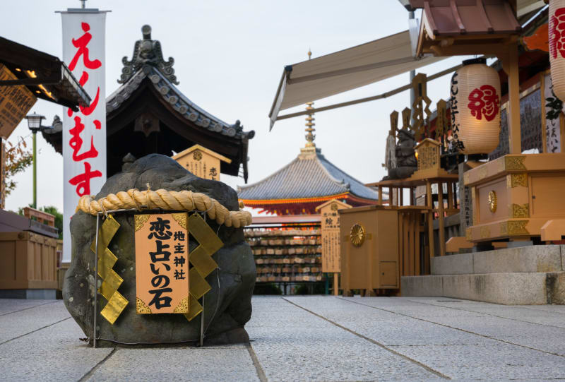 祇園エリアにある『八坂神社』は最強の縁結び&厄除けのパワースポット。境内には恋愛や健康、美容にまつわる神様を祀る社が集結しています。当たると評判の「恋みくじ」もあるので、カップルは必見。