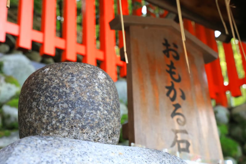 千本鳥居を抜けたら奥社奉拝所に立ち寄り、願いを込めて「おもかる石」を持ち上げてみて。持ち上げたときの重さが予想より軽ければ、その願いは叶うと言われています。