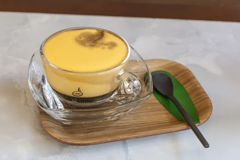 お店の名物は、1946年に現オーナーの父が考案した「エッグコーヒー」。ロブスタ種とアラビカ種をブレンドしたコーヒーに、カスタードクリーム状に泡立てた卵とコンデンスミルクをトッピング。濃厚なクリームの甘みと、コーヒーの苦味が絶妙にマッチした味わいが魅力の一品です。