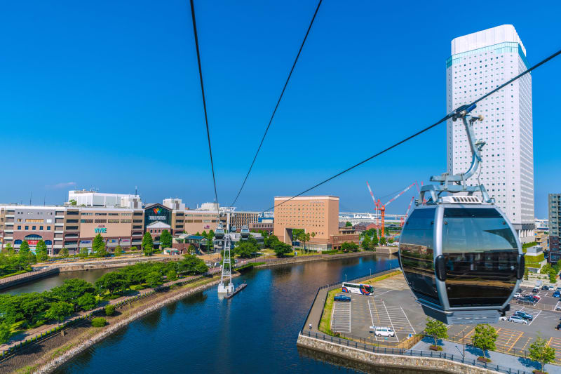 JR桜木町駅前と新港地区の運河パークを結ぶ、日本初の都市型循環式ロープウェイ『YOKOHAMA AIR CABIN(ヨコハマエアキャビン)』。
