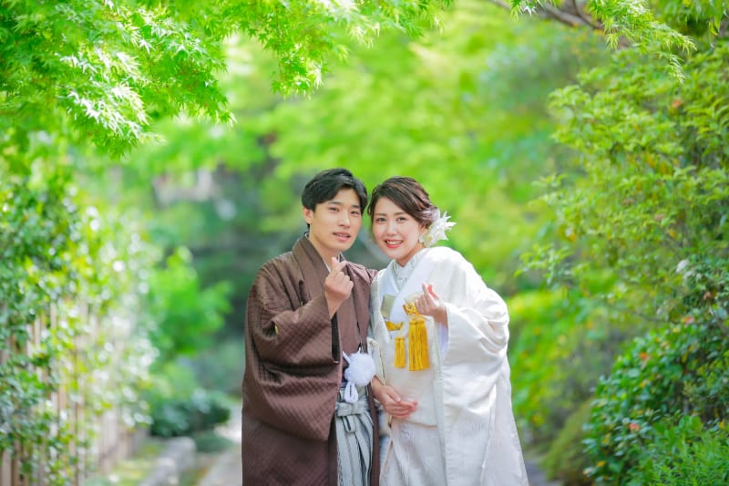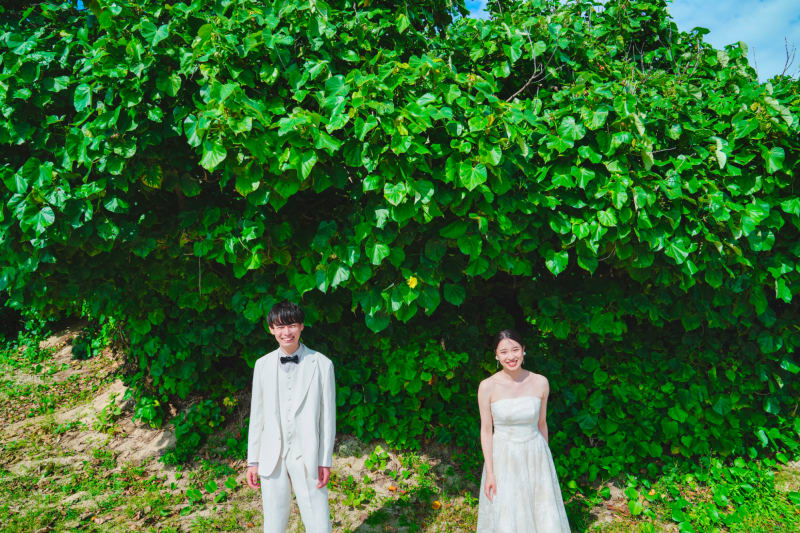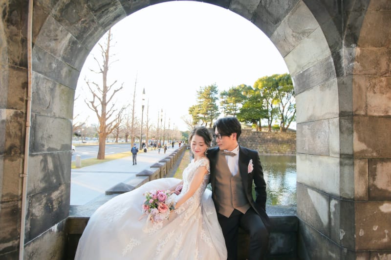 豊かな自然や風情ある街並み、思い出の景色を背景に撮影すれば、より華やかな印象に。シンプルな構図だからこそ、ふたりの世界観が写真からナチュラルに伝わります。
