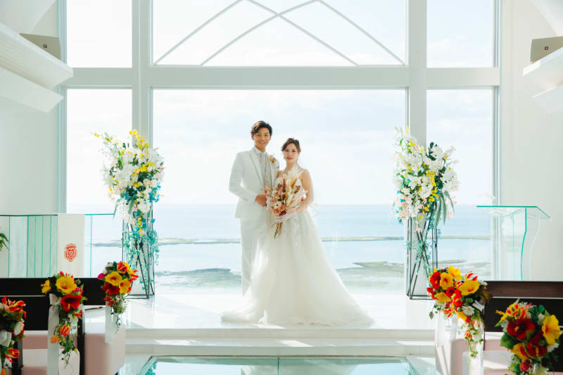 チャペルや式場には特有の建築や装飾があるのも魅力。ステンドグラスの美しい光や、荘厳な祭壇、花々で飾られた通路など、チャペルならではのロマンチックな背景を活用することで、写真に深みと格式高さを添えられます。