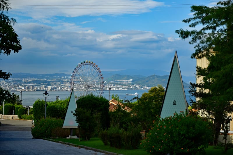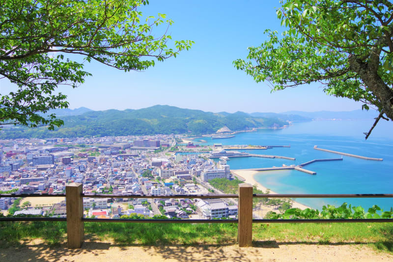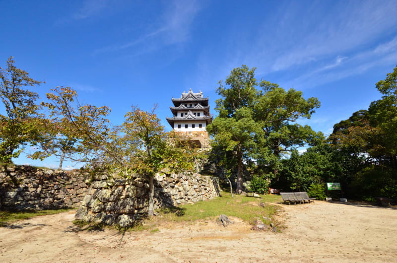 天守台からは淡路島の街並みと紀淡海峡の青い海を一望でき、写真撮影を楽しむのにもぴったり。また、三熊山は桜の名所として有名で、春になると薄紅色に囲まれた華やかな景色も楽しめます。