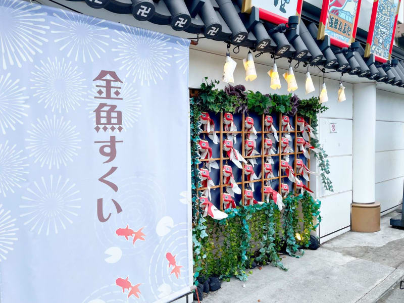 縁日の雰囲気たっぷりのお店には、金魚の紙風船や涼しげな風鈴が並び、店内の鮮やかさはインスタ映えすること間違いありません。
