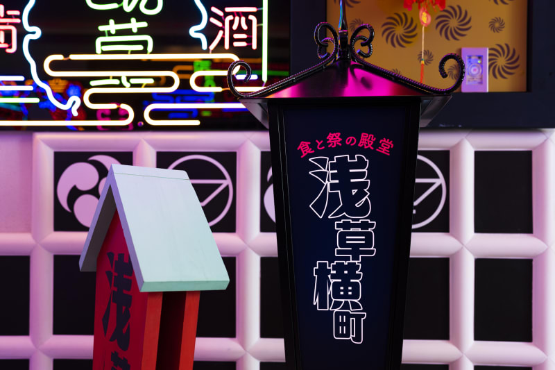 浅草の最新インスタ映えスポットなら『食と日本の祭りの殿堂 浅草横町』は外せません! 日本のお祭り文化を体感しながら料理を楽しめるエンタメ酒場として、2022年「東京楽天地浅草ビル」にオープン。