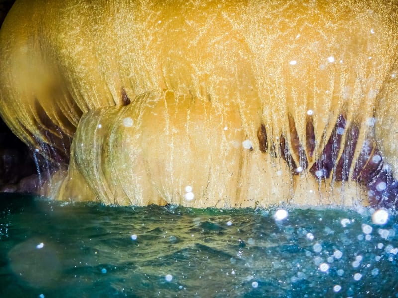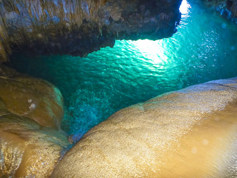 鍾乳洞の中に入るには、ケイビング(洞窟探検)ツアーが実施されていて、カヌーに乗ったり、泳いだりと、さまざまな体験が楽しめます。干潮時しか入り口が開いていないのも、神秘的なパワーを感じるひとつ、満潮時になると自然と閉ざされてしまい入れません。