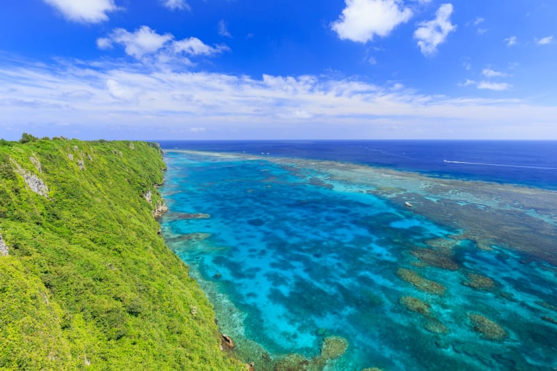 コバルトブルーとエメラルドグリーンのグラデーションがすばらしく、透明感抜群の海と陸が続く景色が目の前に現れます。