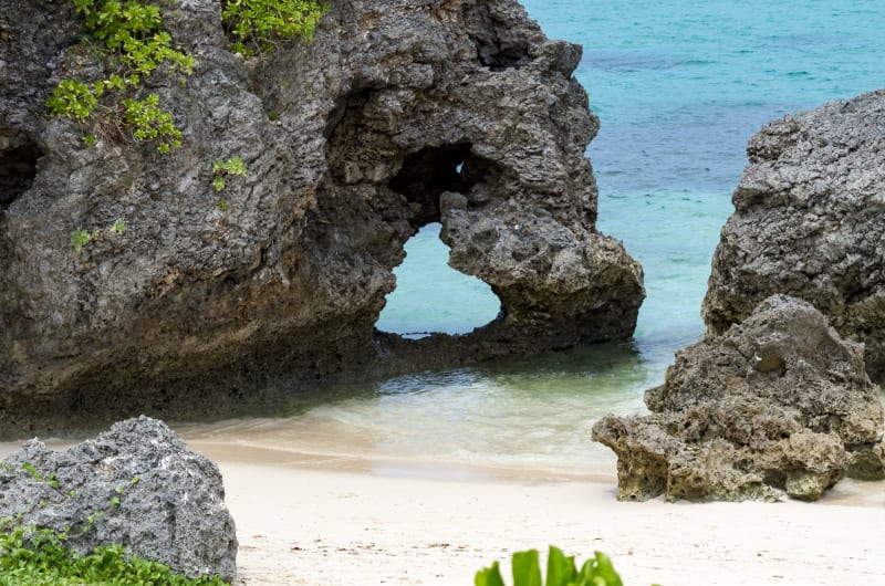 『池間島 ハート岩』は、宮古島から池間大橋で繋がっている、池間島のイキヅービーチにあるスポット。その名の通りハートの形をした岩が人気を集めています。自然が作り出したハート岩の先に見える青い海は、とても幻想的。デートスポットにもおすすめですよ。