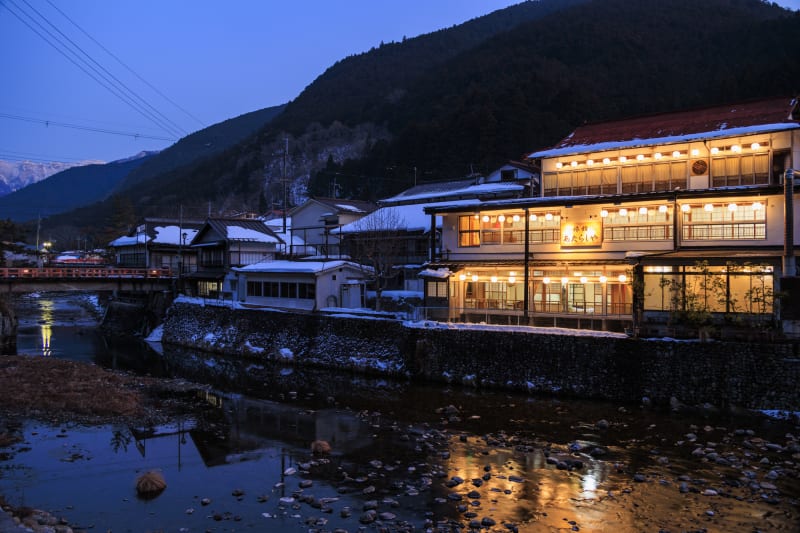 標高820mほどに位置する温泉街は、カルシウムを多く含む湧き水「ごろごろ水」や、奈良県では数少ないスキー場「スノーパーク胴川」など、冬でも楽しめる観光スポットも。スキー場で冬のアクティビティを楽しんだ後に、ゆっくりと温泉に入って、入浴後にはタイムスリップしたかのような温泉街をのんびりと散策するのもいいですね♪