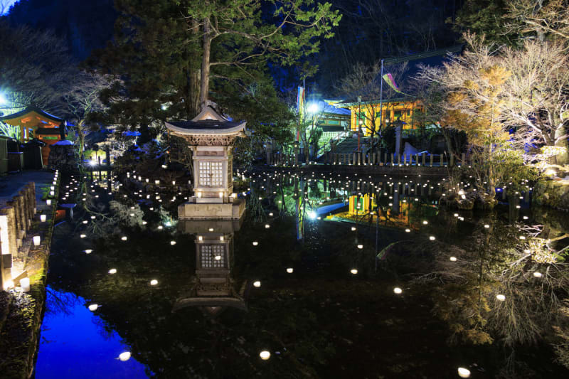 荘厳な雰囲気の龍泉寺が、冬になるとあたたかな光に包まれます。天川地区では毎年1月から2月にかけてライトアップイベント「天川ウィンターストーリー」が開催されます。龍泉寺では期間中、ライトアップだけでなく特別寒中護摩修行も開催。参加者の願いを書いた護摩木を焚き、願い事の成就を祈るので、ぜひ参加してみてくださいね。