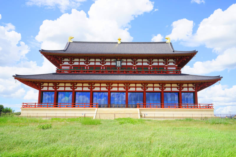 710年に藤原京から遷都された平城京。平城京の中心として、都を治める官公庁などの施設が集結していた平城宮。長期間にわたって調査や復原整備が進められ、現在では『平城宮跡歴史公園』として開放されています。2018年には「朱雀門ひろば」にレストランやカフェ、観光施設などが集結した観光交流施設がオープンし、多くの人でにぎわう話題のスポットになっていますよ。