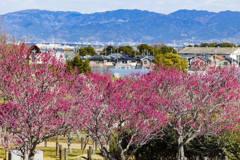 1月中旬頃には、園内の約100本の梅も見頃を迎えます。凛とした冬の空気の中に咲き誇る花々を眺めて散策するのもおすすめ。