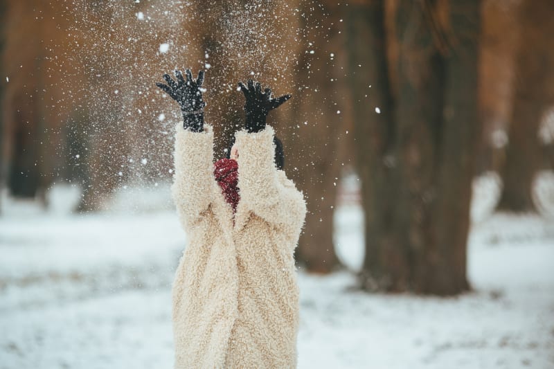 足元は、ブーツや防寒靴などの滑りにくく暖かな靴と、ボトムスにはパンツスタイルの際もタイツなどを重ねて着用することをおすすめします。