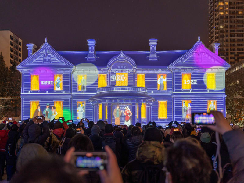 夜の大通公園会場はプロジェクションマッピングによる演出で、昼とは景色が一変。美しくロマンチックな札幌の冬を満喫してみて。