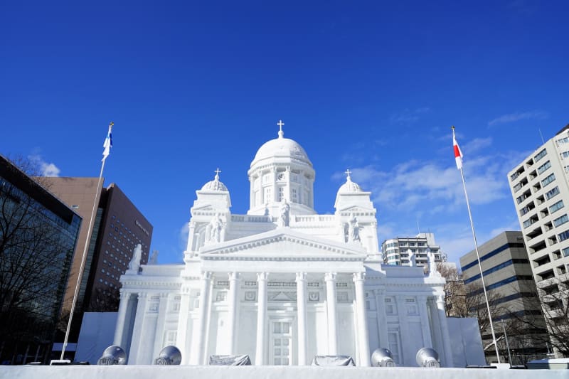 大通公園会場では、雪まつりの象徴となる大雪像5基をはじめにさまざまな雪像、ウインターアトラクションなどを展開予定。すすきの会場では、「氷を楽しむ」をテーマに氷像が「すすきの」ネオンに輝く幻想的な演出がなされます。