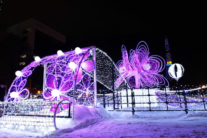 日本初の雪を彩るイルミネーションとして1981年に始まった『さっぽろホワイトイルミネーション』。札幌市内の会場をそれぞれのテーマに沿った装飾が施され、真っ白な雪と色とりどりのイルミネーションが輝く幻想的な世界が広がります。