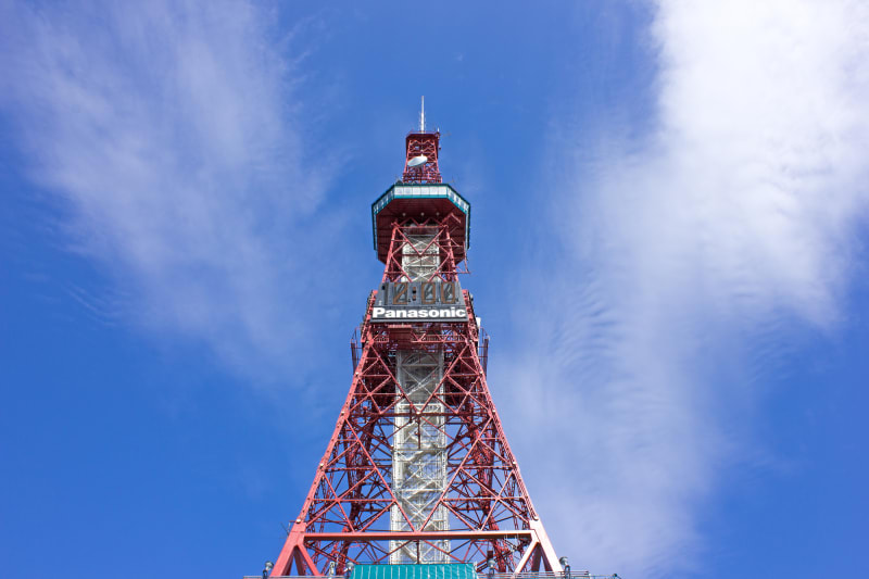 時計台の鐘の音を聞いたら、徒歩約3分の場所にある「さっぽろテレビ塔」にも立ち寄りましょう。今から約70年前の1956年に建てられた高さ147メートルの真っ赤なテレビ塔は、札幌を象徴する観光スポットです。