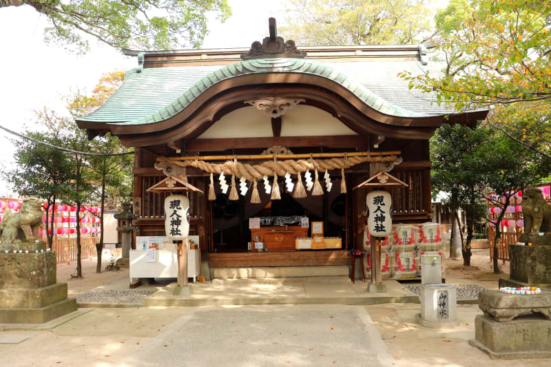 博多駅から30分ほどにある『現人神社』は、底筒男命(そこつつのおのみこと)・中筒男命(なかつつのおのみこと)表筒男命(うわつつのおのみこと)を祀った神社。縁結びのパワースポットとしても話題です。