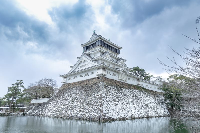 福岡県北九州市小倉北区にある小倉城。永禄12年に中国地方の毛利氏が現在の小倉城の場所にお城を築いたことに始まり、慶長7年、細川忠興が本格的な城を建造。福岡県で唯一の天守閣を持つこちらのお城は、4階よりも5階が大きい「唐造り」と呼ばれる造りが特徴です。