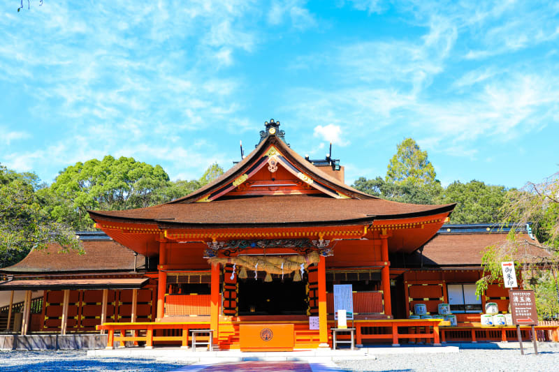 境内には歴史深い建築物が点在。徳川幕府が1804年から60年以上の月日をかけて造られた社殿群は、色鮮やかな漆塗りが施されており、その美しさから「東海の日光」とも呼ばれているのだとか。特に2階建て造りの重厚な大拝殿は、木造神社建築でも最大規模の25メートルを誇り、見ごたえ抜群。