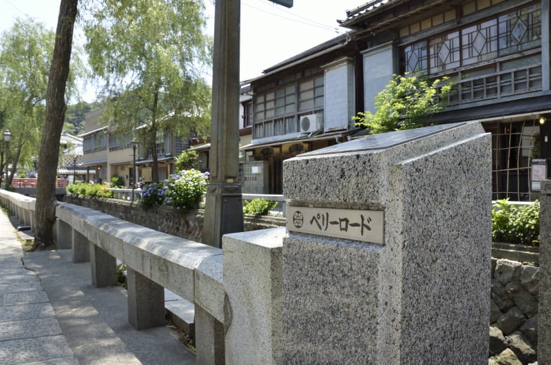 静岡県下田市の約500メートルに渡り続くストリート『ペリーロード』。幕末に黒船を率いて来航したペリー提督一行がこの道を行進したことからペリーロードと名づけられました。平滑川沿いに続く柳の木々、石畳の路地、伊豆石やなまこ壁の建物など明治〜大正時代にタイムスリップしたかのような趣ある雰囲気を味わえます。