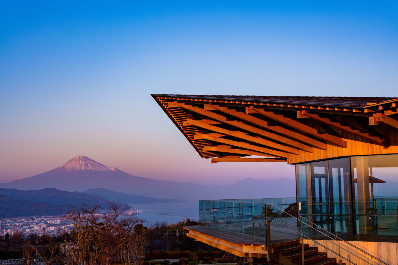 隈研吾建築都市設計事務所が設計を手がけた『日本平夢テラス』は、地元静岡県産のひのき材を使用し、自然に調和する八角形の優しいデザイン。館内はガラス越しに絶景をのぞめるカフェも併設。ドリンクやデザートを味わいながら、おしゃれな空間で景色をゆっくりと堪能するデートはいかがでしょうか?