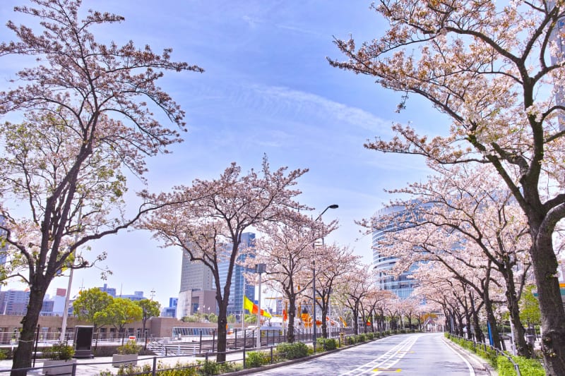 みなとみらいの主要観光エリアの為、アクセスが良いのもポイント。都会的な景観に温かみのあるピンク色の桜のコントラストを楽しみながら、さくら通りを散策してみてくださいね♪