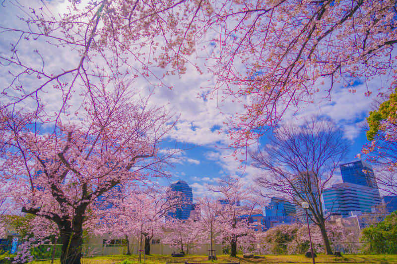 京急線神奈川駅から徒歩2分ほどの『幸ヶ谷公園(こうがやこうえん)』は、地域の人から愛される桜の名所。広い敷地内には桜をはじめさまざまな草木が植えられていて、春には広場の23本の桜が満開に。ソメイヨシノより色が濃い新種のジンダイアケボノも開花します。