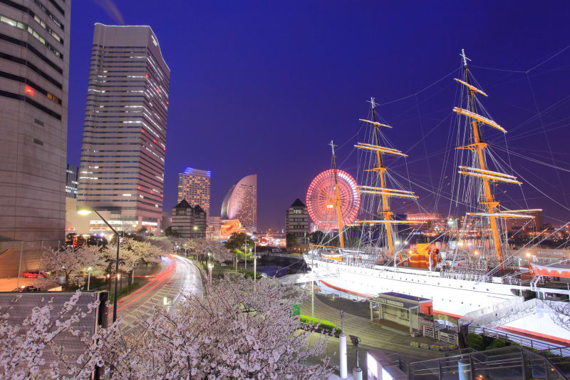 さらに日が暮れれば、みなとみらいの美しい夜景と桜のコラボレーションも。デートの最初に立ち寄るのもよし、デートの最後に夜景を眺めに訪れてもよし! 横浜のみなとみらいを感じられる桜景色が楽しめますよ。