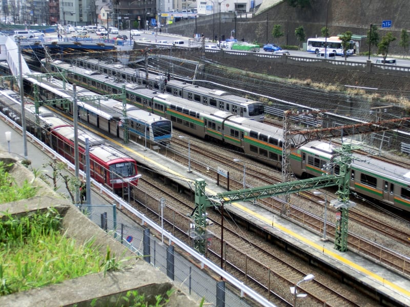 線路沿いの高台に位置しているため、電車が走る様子を見られるのも特徴。京急線、東海道線、横須賀線、京浜東北線といろいろな電車が通るので、電車好きにはたまらないスポットですよ。