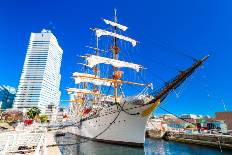 横浜港のシンボル「帆船日本丸」と横浜港の歴史を学べる「横浜みなと博物館」を併設する『日本丸メモリアルパーク』。目の前にみなとみらいの景観が広がり、フォトウェディングの撮影スポットとしても人気があります。