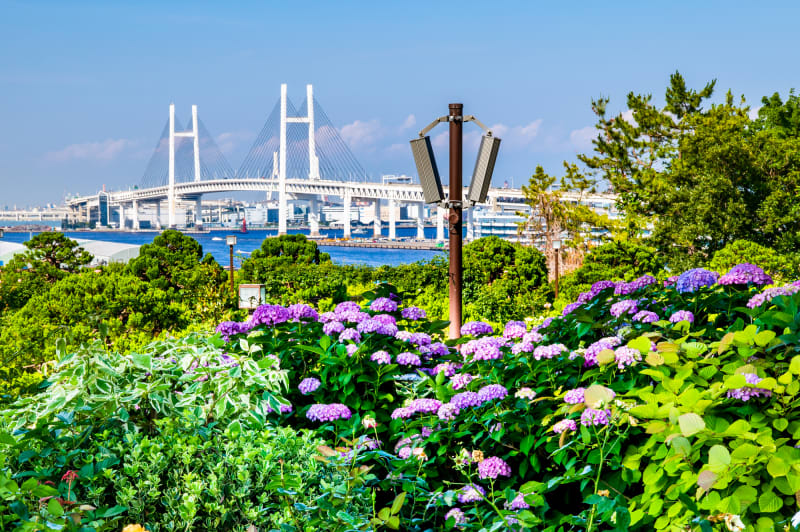 横浜山手エリアの定番観光スポット『港の見える丘公園』。港や横浜ベイブリッジなど横浜らしい景色を一望できる眺望や、外国人居留地だった面影が残る西洋館、四季折々の草花を楽しめるガーデンなど見どころが満載です。