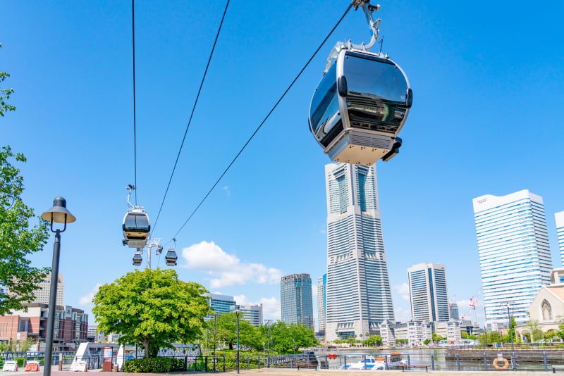 JR桜木町駅前と新港地区の運河パークを結ぶ『横浜エアキャビン』は、世界最先端の都市型循環式ロープウェイ。みなとみらい21や赤レンガ倉庫と、みなとみらいを代表する観光スポットを上空から望めると人気を集めています。