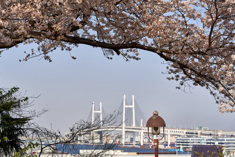 さらに『港の見える丘公園』へ移動したら、バラの名所「ローズガーデン」でのお花見はもちろん、展望台から見晴らしの良い眺めに注目して。桜越しに横浜ベイブリッジが眺められる特別な場所で横浜山手ならではの雰囲気をめいっぱい感じてみて。